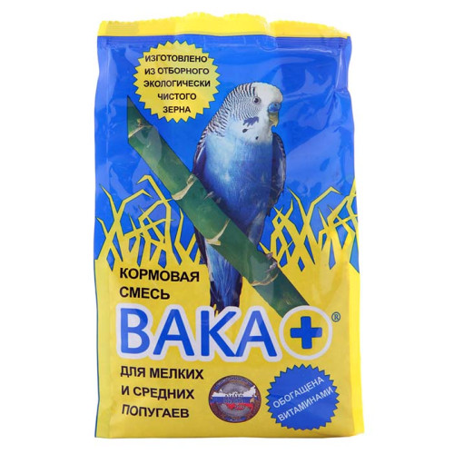 Вака корм для мелких и средних попугаев ПЛЮС 500г *10 (мягкая упаковка)