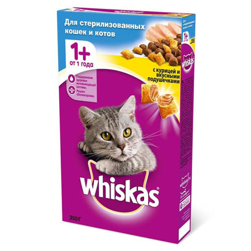 - Вискас/Whiskas 800гр корм для стерилизованных и кастрированных кошек подушечки с курицей 349 р.