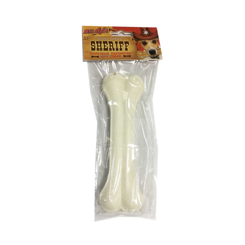 Брава/BraVa Шериф лакомства для собак кость из жил белая 6"/15см 1шт