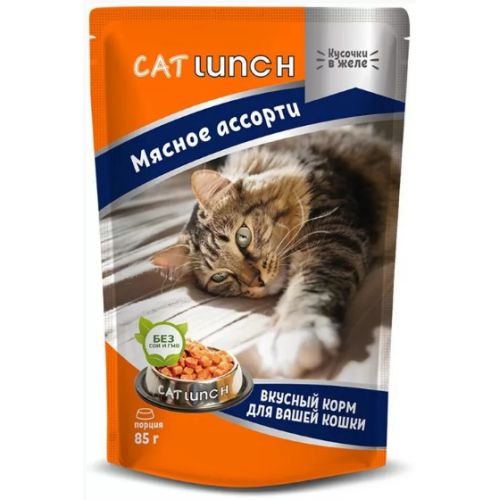 КэтЛанч/Cat Lunch пауч корм для кошек Мясное ассорти в желе 85г