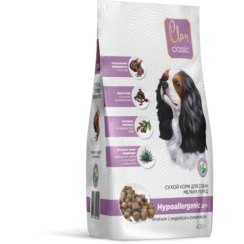 c Клан/Clan Classic Hypoallergenic корм для собак мелких пород ягненок/индейка/бурый рис 400гр*12