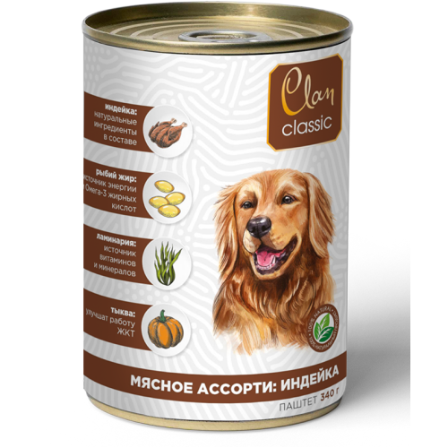 Клан/Clan Classic консервы корм для собак паштет Мясное ассорти Индейка 340гр