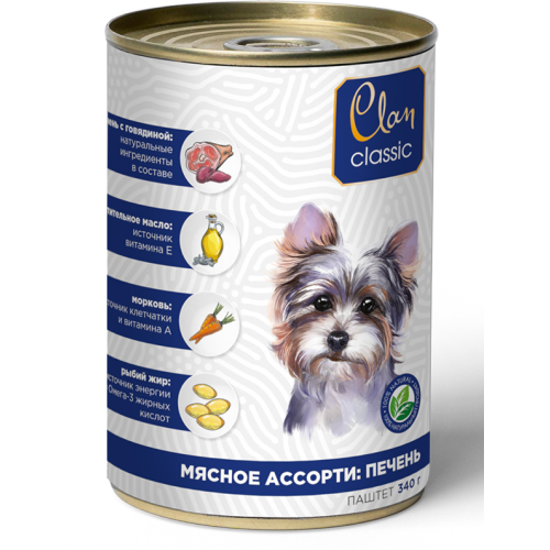 Клан/Clan Classic консервы корм для собак паштет Мясное ассорти с Печенью 340гр