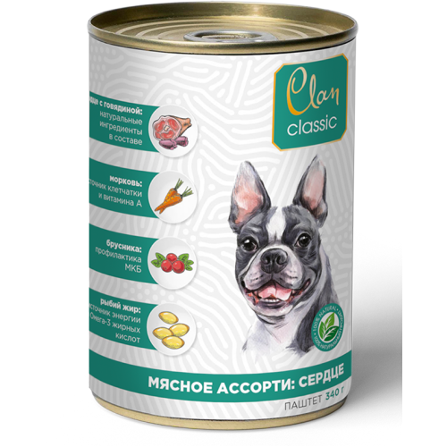 Клан/Clan Classic консервы корм для собак паштет Мясное ассорти с Сердцем 340гр