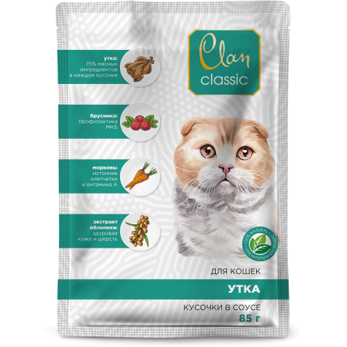 Клан/Clan Classic пауч корм для кошек соус Утка с брусникой и морковью 85гр*14