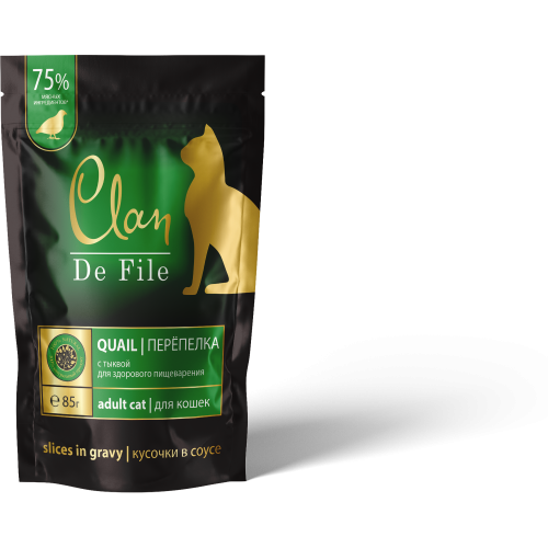 Клан/Clan De File пауч корм для кошек Перепелка с тыквой 85гр*14