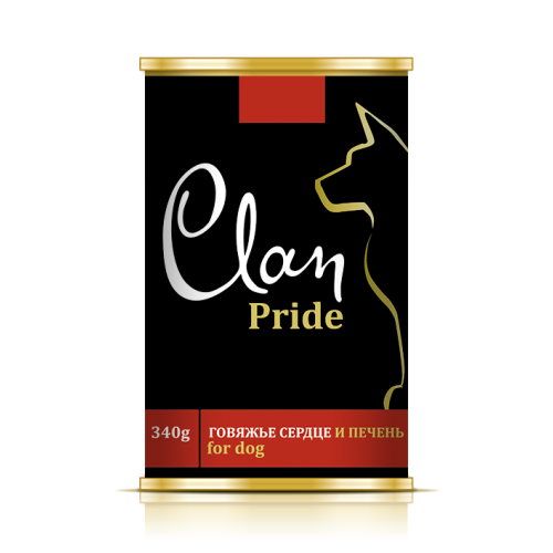 c Клан/Clan Pride консервы корм для собак говяжье сердце и печень 340гр*12
