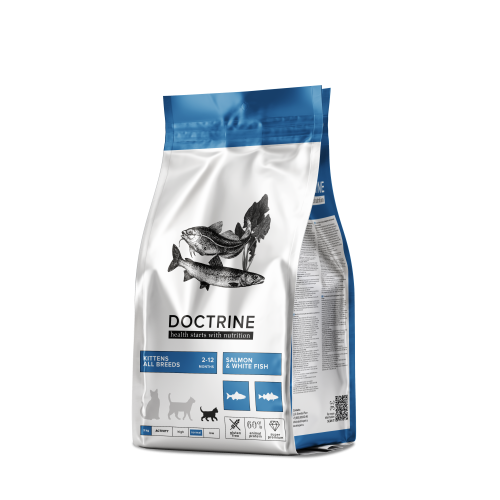 Doctrine Полнорационный беззерновой сухой корм для котят с лососем и белой рыбой тресковых пород