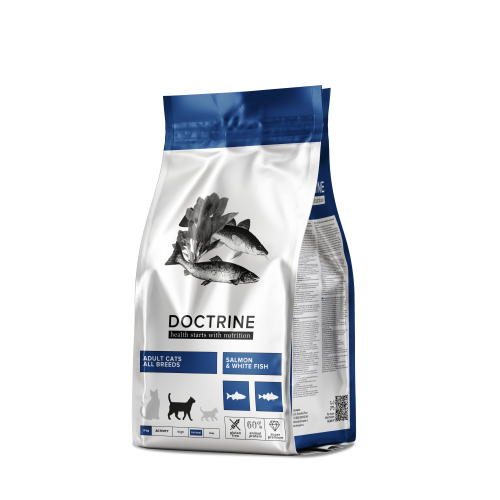 Doctrine Полнорационный беззерновой сухой корм для взрослых кошек и котов с лососем и белой рыбой тресковых пород