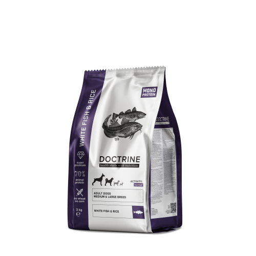 Доктрин/Doctrine Беззерновой корм для собак средних и крупных пород Белая рыба/рис 3кг