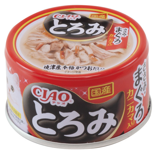 Суперпремиальный влажный корм для кошек Ciao Toromi от японского производителя Inaba приготовлен на основе нежного куриного филе, кусочков глубоководного тунца с добавлением сурими и насыщенного фирменного бульона. Корма и лакомства Inaba отличаются высоким качеством и неповторимым вкусом, ведь они изготавливаются на основе отборных традиционных японских ингредиентов! Во все продукты добавлен экстракт зеленого чая, который, благодаря содержанию катехина, обладает нейтрализующим действием на запах содержимого кишечника. Корм обогащён витамином Е - натуральным антиоксидантом, поддерживающим иммунную систему, не содержит искусственных добавок, красителей и консервантов.