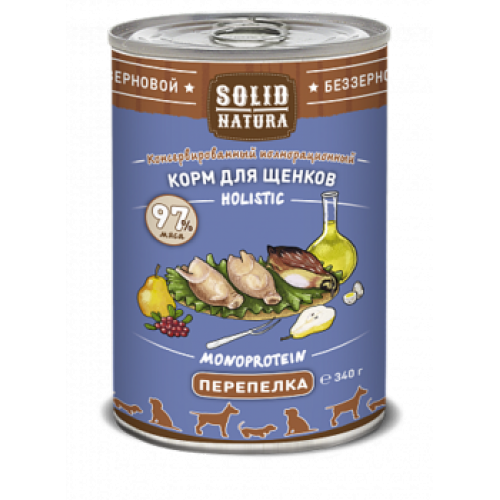 c Солид/Solid консервы Natura Holistic корм для щенков Перепёлка 340гр*12