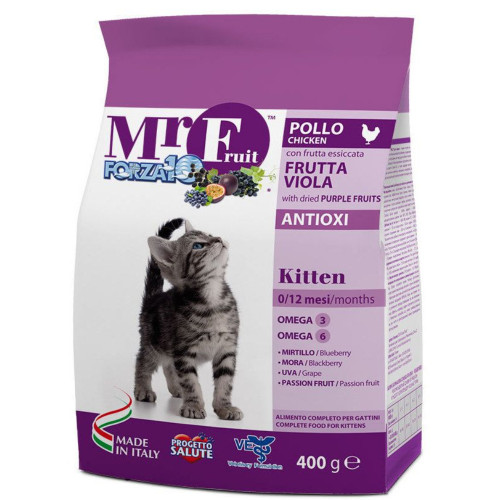 FORZA10 Mr. Fruit Kitten — это корм для котят с экстрактами фиолетовых фруктов. Для гармоничного развития, котёнку, ежедневно необходимо достаточное количество питательных веществ, а также витаминов, минералов и основных незаменимых жирных кислот.