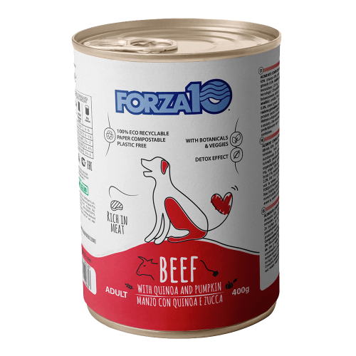 FORZA10 Maintenance BEEF — влажный корм с говядиной, киноа и тыквой, рецепт обогащённым мясом, с добавлением овощей, а также ценных ароматических и лечебных трав.