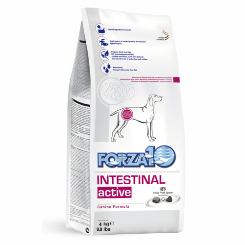FORZA10 Intestinal Active — полнорационный диетический корм для взрослых собак с проблемами ЖКТ. Корм обладает высокой усвояемостью и гипоаллергенностью. В состав входят экстракты растений, свойства которых хорошо известны в фитотерапии и традиционной медицине. Помогает сохранить желудочно-кишечный тракт собак здоровым.