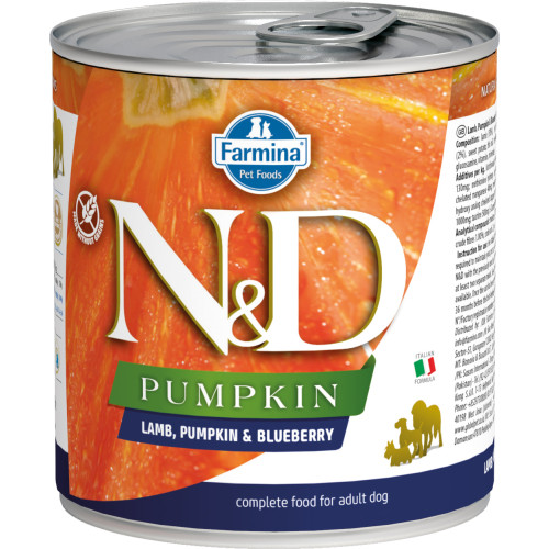 •  Фармина/Farmina  консервы N&D Pumpkin корм для собак Ягненок с тыквой и черникой  285гр