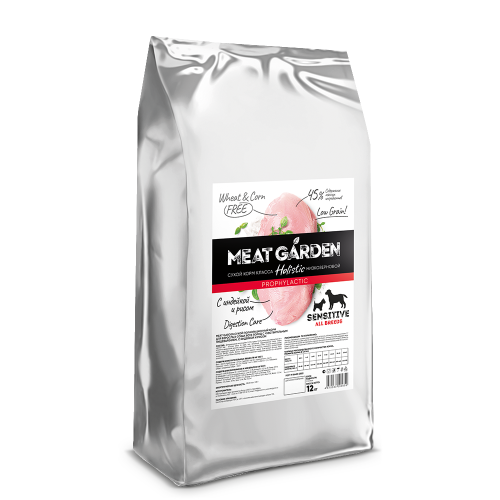 MEAT GARDEN СУХОЙ ПОЛНОРАЦИОННЫЙ КОРМ ДЛЯ ВЗРОСЛЫХ СОБАК ВСЕХ ПОРОД С ЧУВСТВИТЕЛЬНЫМ ПИЩЕВАРЕНИЕМ, С ИНДЕЙКОЙ И РИСОМ