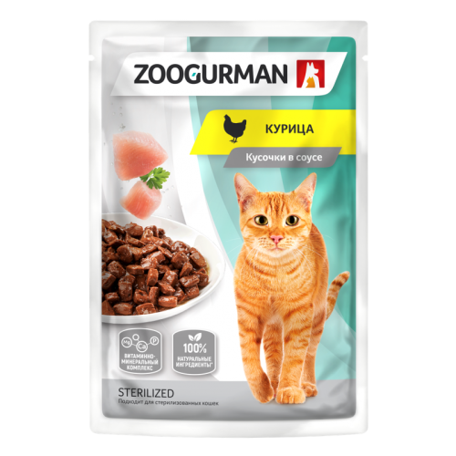 Зоогурман пауч корм для кошек Кусочки в соусе Курица 85гр*30