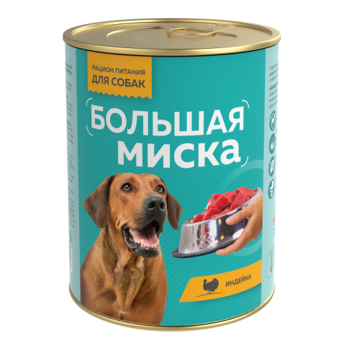 Консервированный неполнорационный корм для собак серии Большая миска с индейкой «ИНДЕЙКА»
