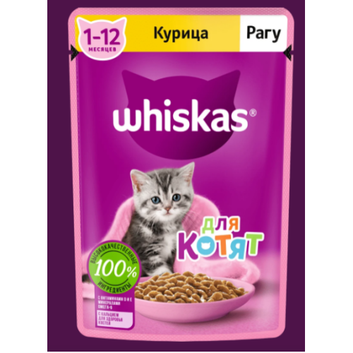 - Вискас/Whiskas 75гр пауч корм для котят рагу ягненок 29 р.