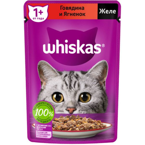 Вискас/Whiskas 75гр пауч корм для кошек желе говядина/ягненок