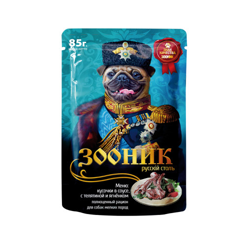 Зооник пауч 85гр корм для собак телятина и ягненок в соусе*24