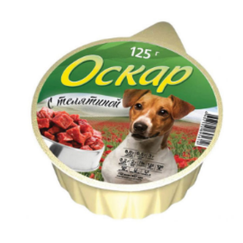 Влажный корм «Оскар» ламистер с телятиной 125 граммовСостав: Мясо телятины и субпродукты мясные, кле..