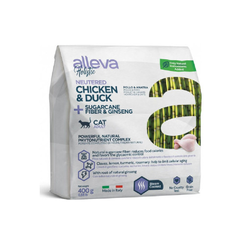 Аллева/Alleva Холистик Беззерновой корм для кошек кастр/стерил Курица/Утка/тростник/женьшень 400гр