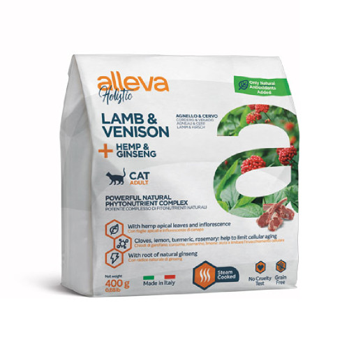 Аллева/Alleva Холистик Беззерновой корм для кошек Ягненок/Оленина/конопля/женьшень 400гр