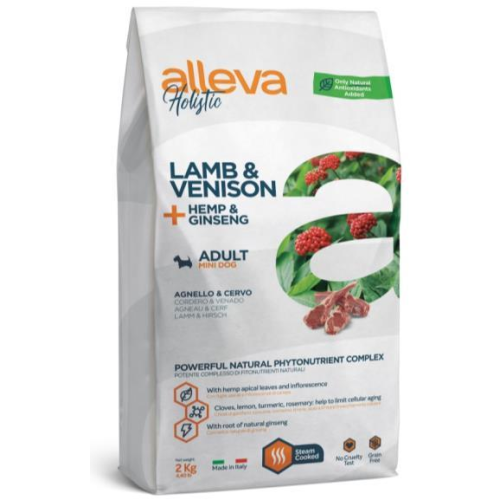 Аллева/Alleva Холистик Беззерновой корм для собак мелких пород Ягненок/оленина/конопля/женьшень 2кг