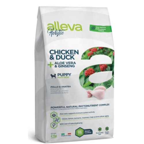 Аллева/Alleva Холистик Беззерновой корм для щенков крупных пород Курица/утка/алое/женьшень 2кг