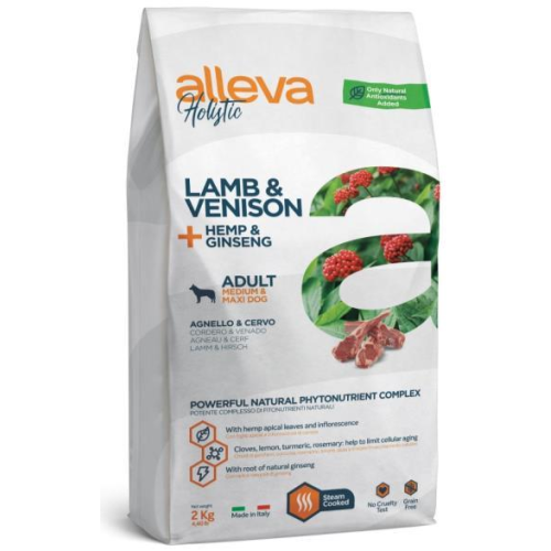 Аллева/Alleva Холистик Беззерновой корм для собак ср/круп. пород Ягненок/оленина/конопля/женьш. 2кг