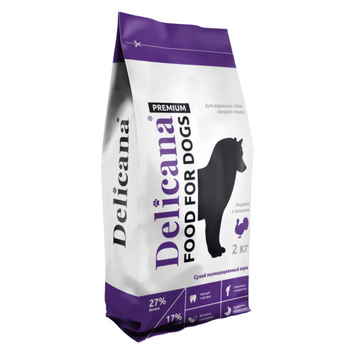Деликана/Delicana корм для собак средних пород Индейка с овощами 2кг*6