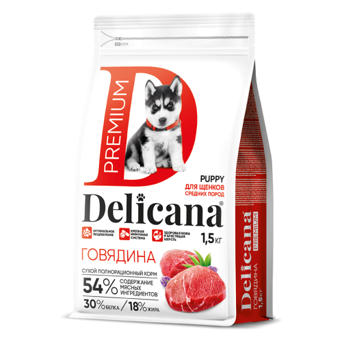 Деликана/Delicana корм для щенков средних пород Говядина 1,5кг