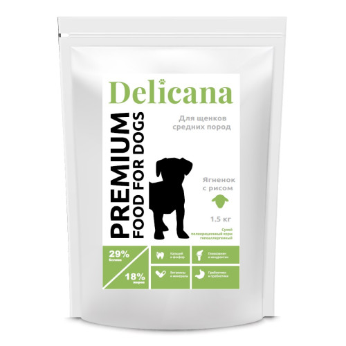 Деликана/Delicana корм для щенков средних пород Ягненок с рисом 1,5кг*6