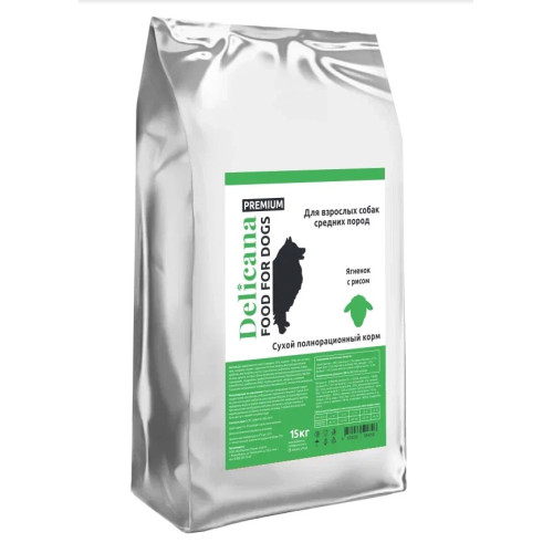 Деликана/Delicana корм для собак средних пород Ягненок с рисом 15кг