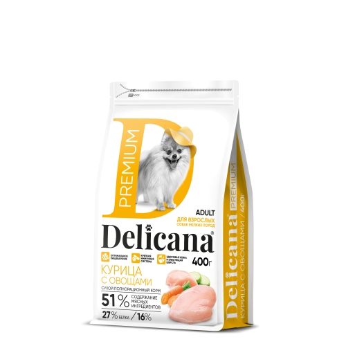 Деликана/Delicana корм для собак мелких пород Курица с овощами 400гр