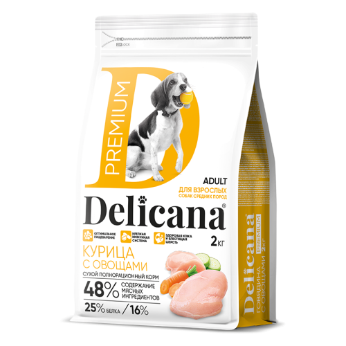 Деликана/Delicana корм для собак средних пород Курица с овощами 2кг