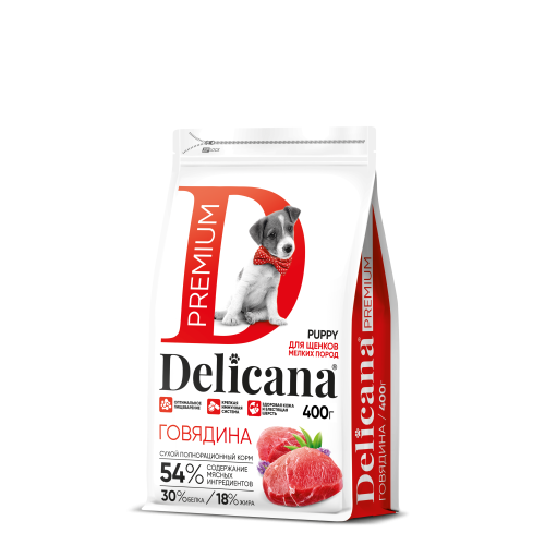 Деликана/Delicana корм для щенков мелких пород Говядина 400гр