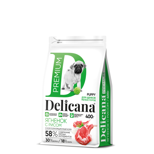Деликана/Delicana корм для щенков мелких пород Ягненок с рисом 400гр