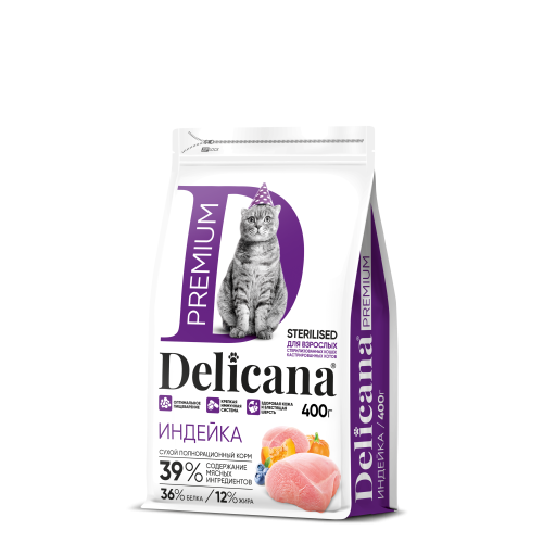 - Деликана/Delicana корм для кошек стерилизованных/кастрированных Индейка 1,5кг 1 273 р.