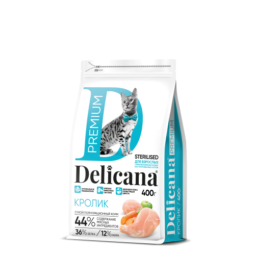 - Деликана/Delicana корм для кошек стерилизованных/кастрированных Кролик 1,5кг 1 273 р.