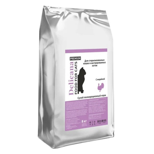 Деликана/Delicana корм для кошек стерилизованных/кастрированных Индейка 8кг