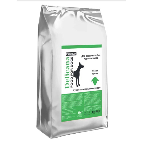 Деликана/Delicana корм для собак крупных пород Ягненок с рисом 15кг