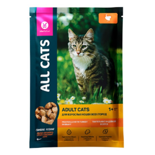 Олл Кэтс/All Cats пауч корм для кошек Тефтельки с индейкой в соусе 85гр*28