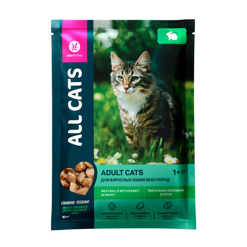 Олл Кэтс/All Cats пауч корм для кошек Тефтельки с кроликом в соусе 85гр*28