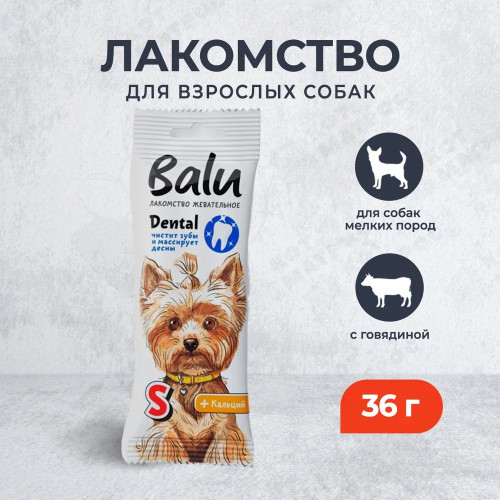 Лакомство Balu Dental для собак малых пород, жевательное, 36 г. Лакомство Balu Dental для собак малых пород, жевательное, 36 г Лакомство жевательное BALU используется для ежедневной чистки и укрепления зубов. Снижает образование зубного камня, способствует уменьшение зубного налета.