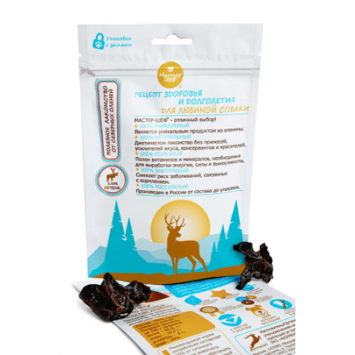 Легкое оленя - ароматное, легкоусвояемое лакомство для собак, богатое витаминами и микроэлементами, которые оказывают положительное влияние на состояние кожи и шерсти. Сушеное легкое для собак разбавит рацион вашего любимца. В составе исключительно легкие северного оленя, благодаря чему продукт является гипоаллергенным и рекомендован к употреблению при любой из диет. Лакомство подойдет для дрессировки собак, порублено на мелкие кусочки, комфортно для быстрого глотания, не вызывает жажду. Рекомендуется для собак с неполной зубной формулой и возрастными изменениями зубочелюстного аппарата.