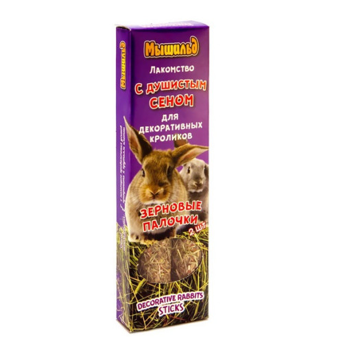 Мышильд лакомство для для кроликов Зерновые палочки с душистым сеном 2шт 100гр