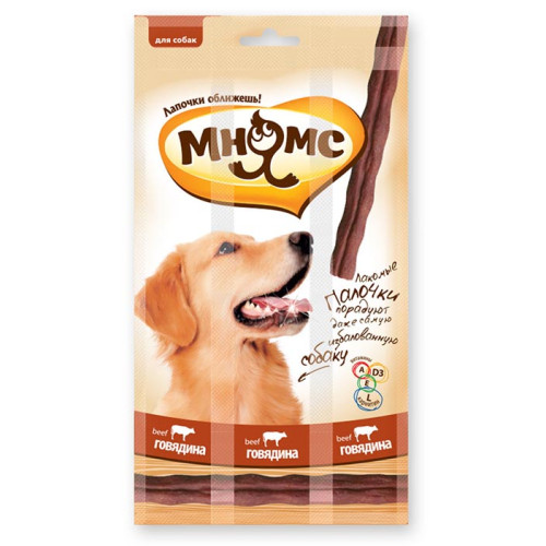 Лакомые палочки с говядиной «Мнямс» - это вкусное и здоровое угощение для собак с большим содержание..